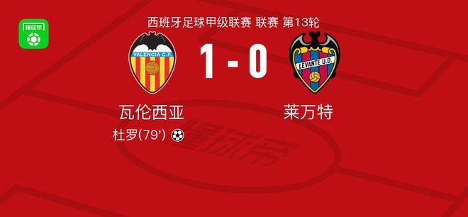瓦伦西亚1-0莱万特,杜罗一击制胜