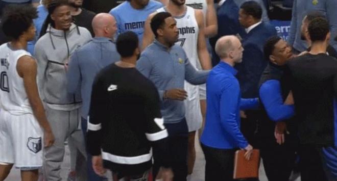 • 大胆,视频显示灰熊贾·莫兰特将手指指向独行侠克莱·汤普森的脸
